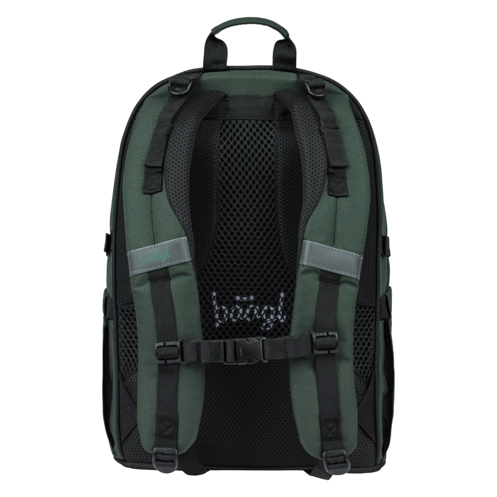 Équipement scolaire complet au design unifié Forest pour élèves plus âgés et étudiants. Le set comprend un solide sac à dos scolaire avec fixation pour skateboard, une trousse spacieuse, un sac de sport pliable, une banane pratique et une housse de protection pour ordinateur portable. Matériaux certifiés GRS, traitement déperlant, éléments réfléchissants de sécurité et fermetures éclair YKK fiables pour assurer confort, ordre et longue durée de vie.