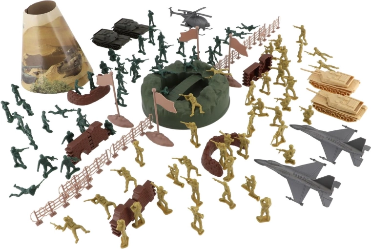 Le vaste ensemble militaire offre tout ce dont les enfants ont besoin pour créer des scènes de bataille captivantes. Ils y trouveront des petits soldats en plastique dans plusieurs poses, des chars, avions et hélicoptères, ainsi que des clôtures, barricades, drapeaux et éléments de terrain. Grâce à l’équipement riche, il est facile de construire des bases, planifier l’avancée et développer une stratégie.