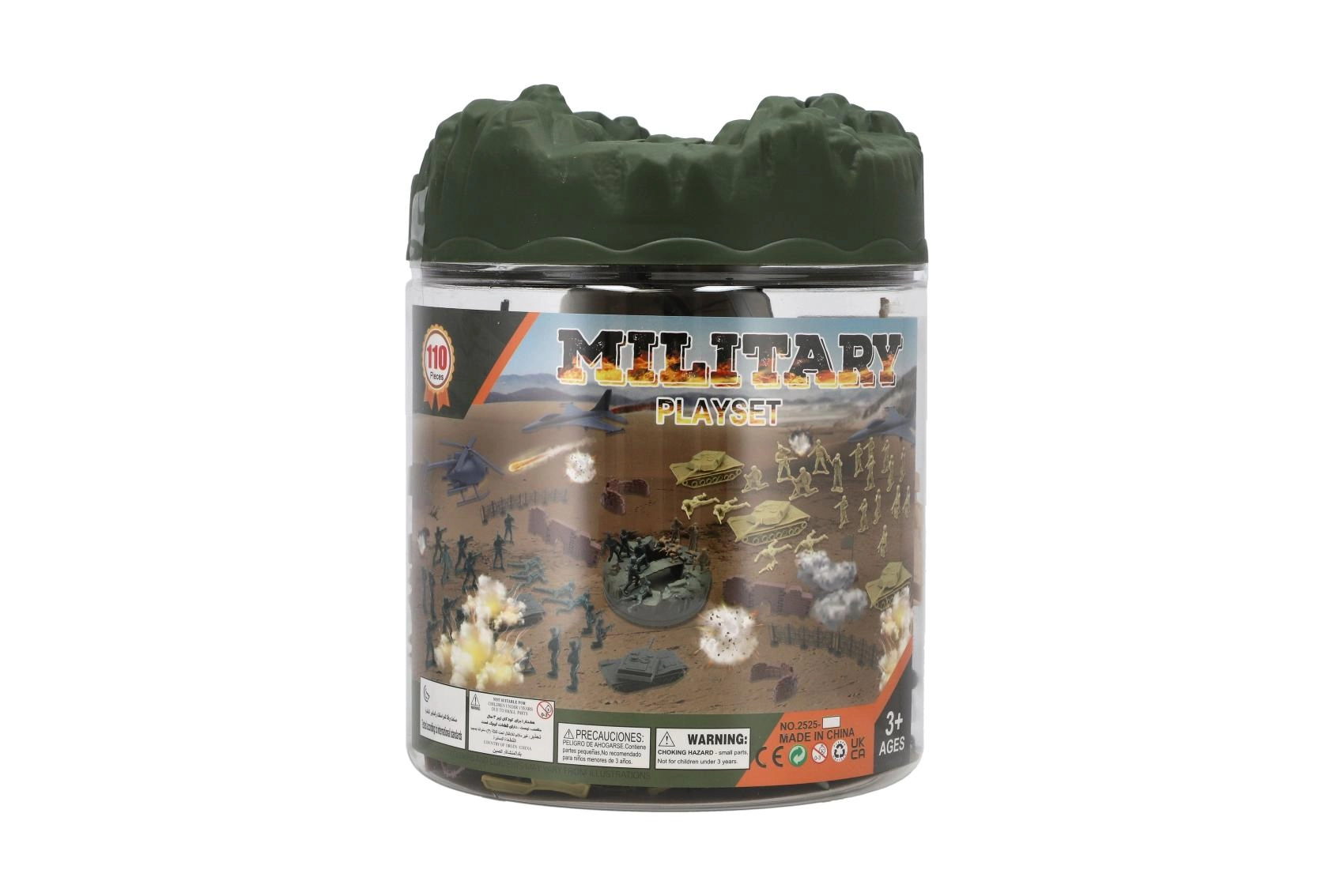 Grand ensemble militaire pour petits aventuriers, proposant 110 pièces pour un jeu d’action – soldats, véhicules, avions et accessoires pour créer son propre champ de bataille. Le tout est rangé dans une boîte en plastique pratique pour un stockage et un transport faciles. Idéal pour stimuler l’imagination, la pensée stratégique et le jeu créatif.