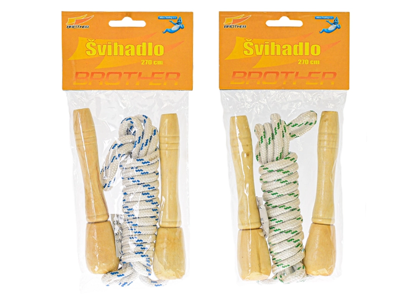 Corde à sauter pour enfants, amusante et résistante, d’une longueur de 270 cm avec poignées en bois confortables. Idéale pour l’activité physique, le développement de la coordination et le jeu en extérieur comme à la maison. Excellent choix pour sauter en solo ou s’amuser avec des amis, disponible en 2 variantes de couleurs.
