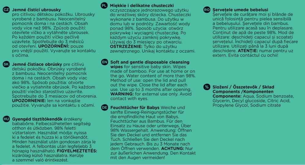 Très douces, les lingettes humides en bambou SO PURE sont idéales pour les soins quotidiens des bébés et de toute la famille. Grâce à leur composition avec plus de 98 % d’eau, elles assurent un nettoyage en douceur sans additifs superflus, sont sans parfum et conviennent même aux peaux très sensibles. La fibre de bambou est naturellement souple, agréable au toucher et, avec sa biodégradabilité, constitue un choix écologique.