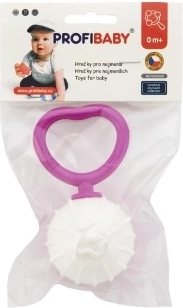 Le hochet mesure environ 18 cm et la bille a un diamètre de 5 cm — une taille idéale pour une prise confortable. La conception bicolore en mélange de couleurs attire le regard et favorise la perception des contrastes. Convient aux enfants dès la naissance.