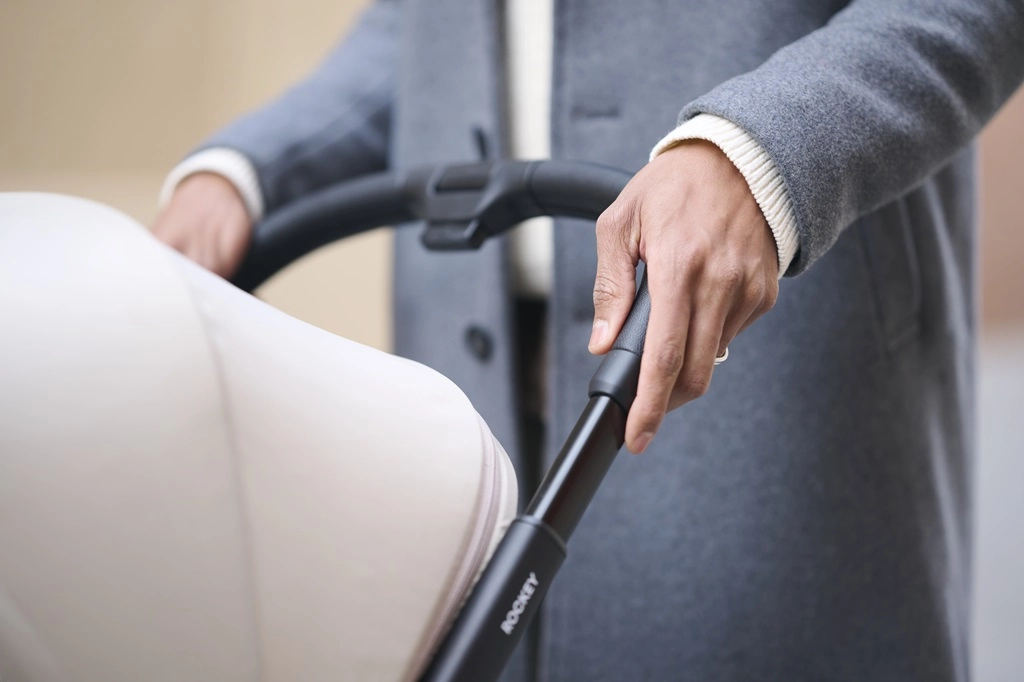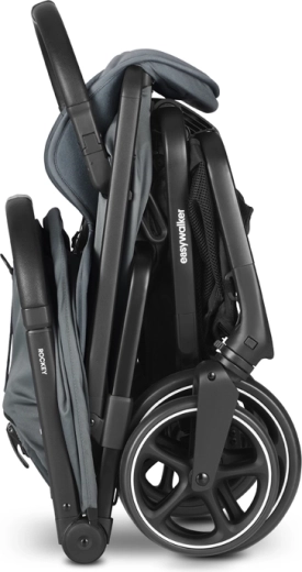 Manipulation rapide et sans souci : la Rockey L se plie et se déplie toute seule en appuyant sur un bouton, vous laissant les mains libres pour votre enfant et vos achats.