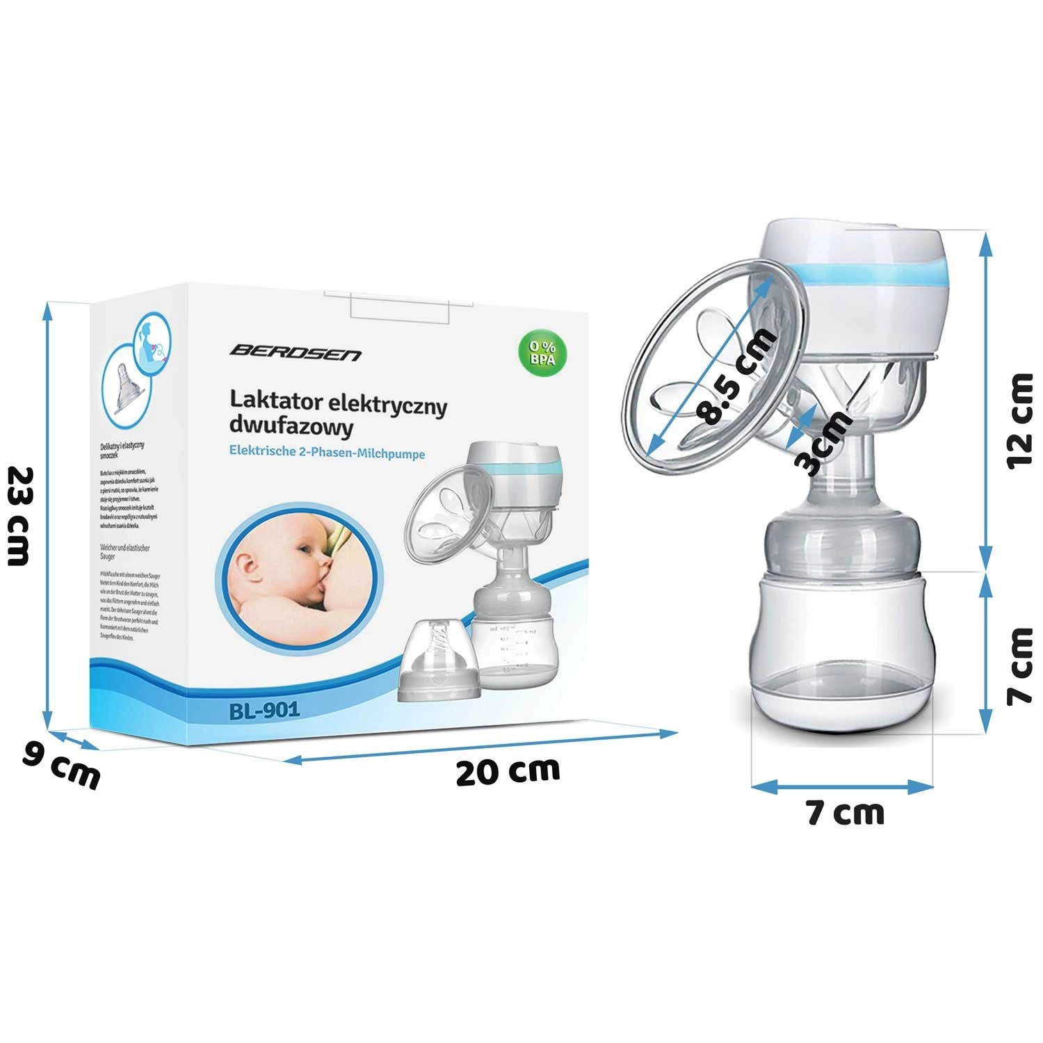 Le tire-lait maternel Berdsen est conçu pour un confort et une efficacité maximaux. Deux phases – stimulation et succion profonde – reproduisent le processus naturel d’allaitement et aident à lancer et maintenir la lactation. L’insert massant en silicone souple adhère en douceur et augmente le confort sans pression douloureuse.