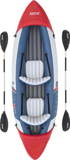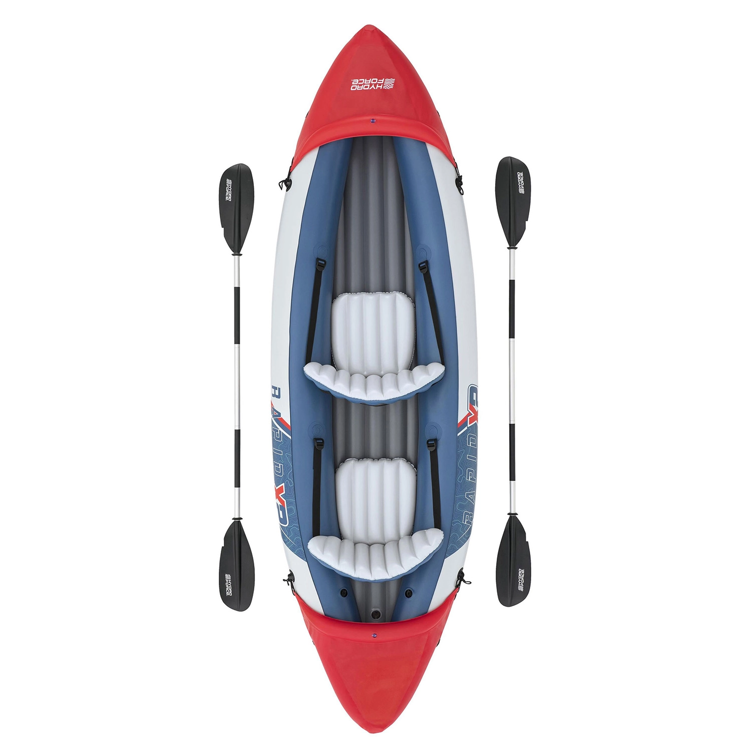 Partez à l’aventure sur l’eau avec le kayak gonflable HYDRO-FORCE Lite Rapid X2 pour deux personnes. Le matériau Inflata‑Shield™ résistant prévient les crevaisons, limite la dilatation et améliore l’adhérence. Le kayak offre un plancher gonflable rigide pour la stabilité, 2 sièges gonflables amovibles pour le confort, 2 pagaies en aluminium, 2 ailerons amovibles pour une meilleure tenue de cap, ainsi qu’une pompe manuelle Air Hammer™ et une rustine de réparation incluses.