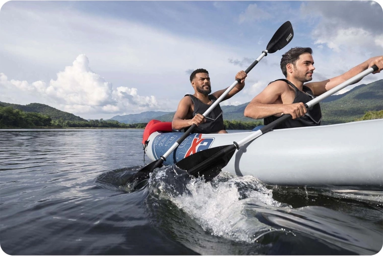PVC renforcé anti-crevaison qui limite la dilatation et augmente l’adhérence pour une navigation plus sûre et une durée de vie prolongée du kayak.