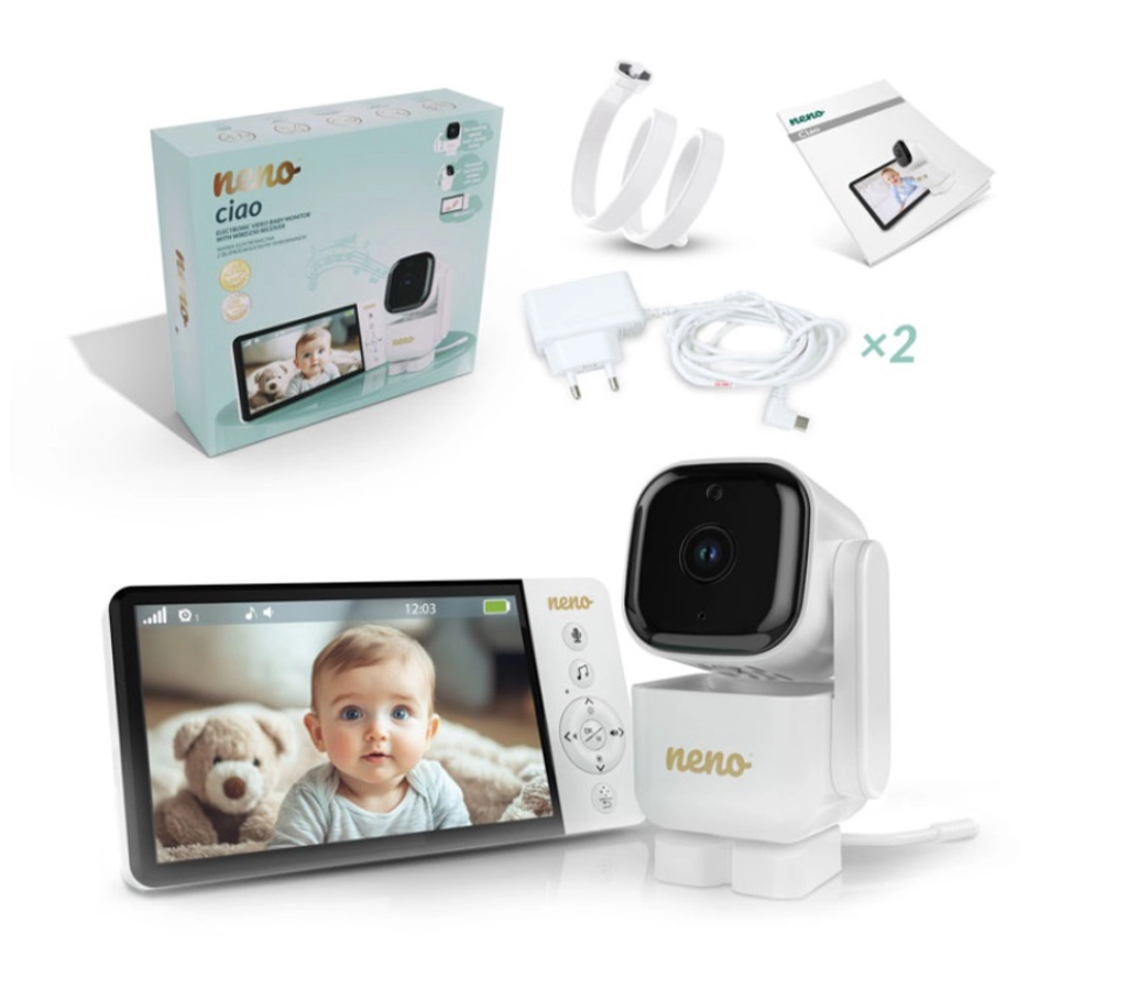 Le babyphone vidéo intelligent Neno Ciao vous apporte la tranquillité grâce à son écran couleur 5", sa caméra rotative Pan & Tilt (355°/90°), sa vision nocturne, sa communication bidirectionnelle et sa technologie VOX pour économiser l’énergie. L’émetteur offre une portée jusqu’à 300 m, un capteur de température, 8 berceuses apaisantes et une autonomie du récepteur jusqu’à 12 heures avec une batterie intégrée de 5000 mAh.