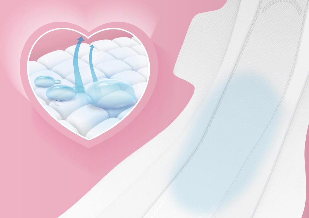 Les serviettes extra longues avec un noyau multicouche absorbent efficacement les liquides et protègent contre les fuites de jour comme de nuit.