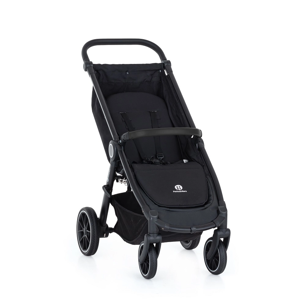 La Petite&Mars Street+ RWS Black Limited 100 est une poussette sportive élégante et pratique, capable d’affronter des terrains plus exigeants. Sa structure stable, légèrement suspendue, et ses roues RWS tout caoutchouc offrent une conduite fluide sans crainte de crevaison. Elle convient aux enfants de 6 mois jusqu’à 22 kg, avec une charge totale pouvant atteindre 25 kg.