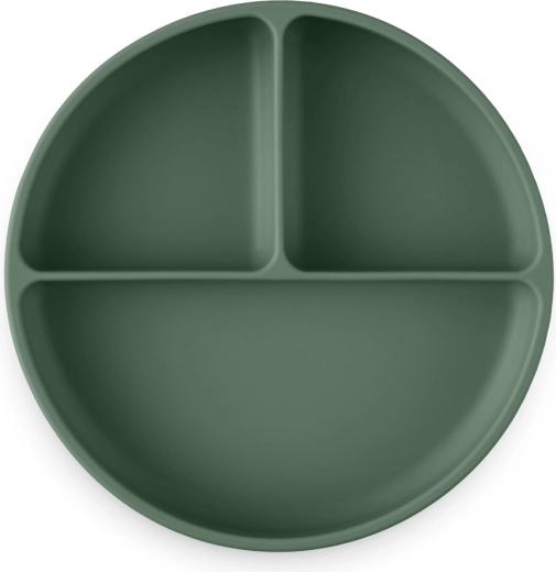 Assiette compartimentée en silicone avec ventouse PETITE&MARS Take&Match Misty Green, ronde, 6 m+