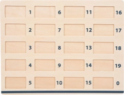 Les enfants s’exercent facilement aux bases de l’arithmétique grâce à une table clairement organisée et à des exercices lisibles sur des pièces en bois.
