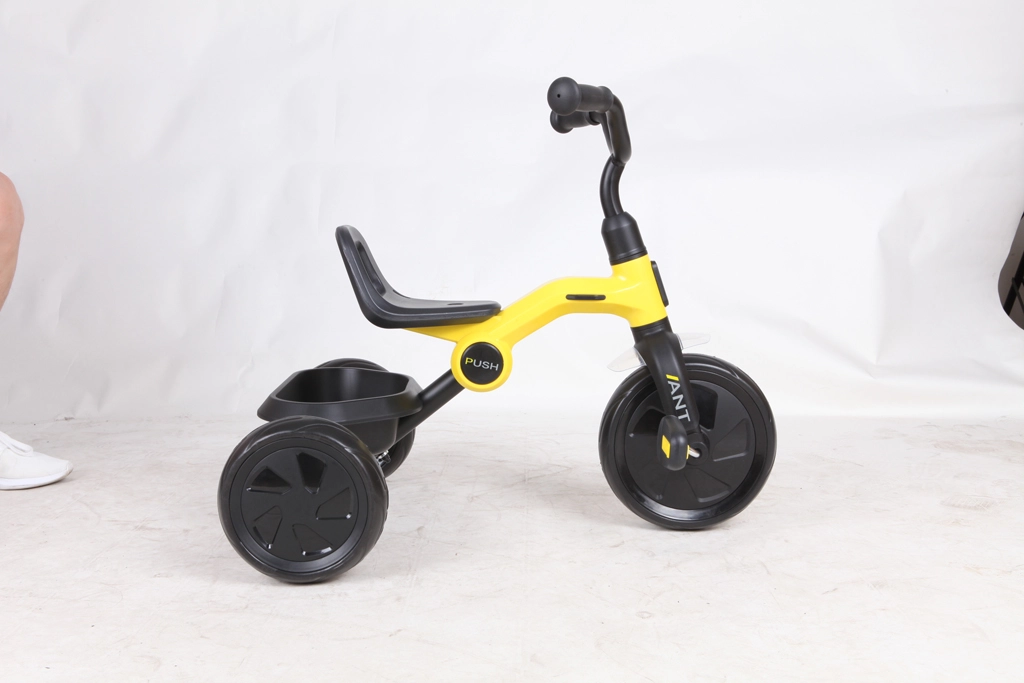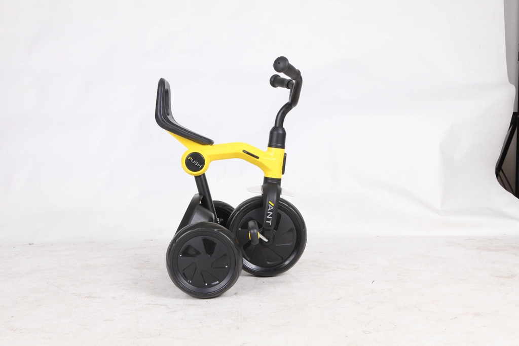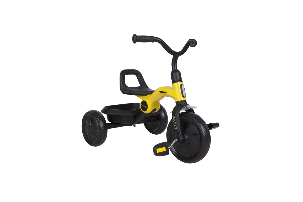 Le tricycle Qplay Ant, léger et résistant, dans une élégante couleur jaune, est idéal pour les enfants de 2 à 6 ans. Il offre une construction métallique solide, une sellette réglable qui accompagne la croissance de l’enfant, des roues EVA sans entretien résistantes aux crevaisons et un design pliable compact avec poignée pour un transport facile. La ceinture de sécurité assure la protection, tandis que le panier arrière accueille les jouets pour les sorties.