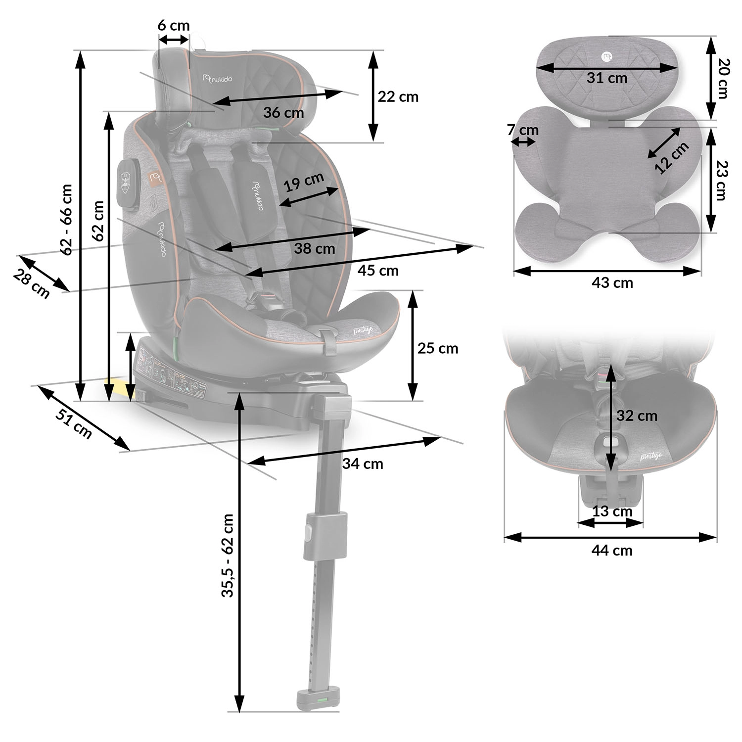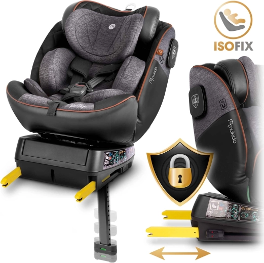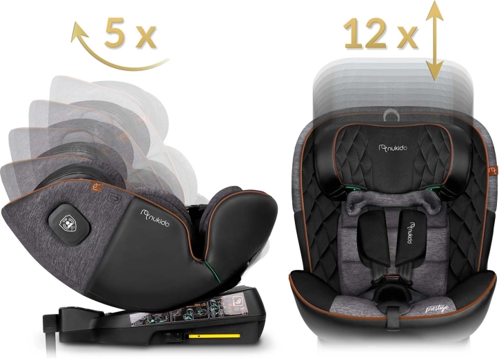 Le siège auto Nukido Prestige Line est conçu selon la norme ECE R129 i-Size pour une taille de 40 à 150 cm et accompagne l’enfant de la naissance jusqu’à environ 12 ans. Grâce à la base pivotante à 360°, vous attachez facilement l’enfant de côté vers la porte, puis verrouillez le siège dans la position souhaitée. La SIP – Side Impact Protection avec flancs renforcés protège la tête, le cou et la colonne vertébrale en cas de choc latéral, tandis que l’ISOFIX et la jambe de stabilisation garantissent une fixation solide et rapide.