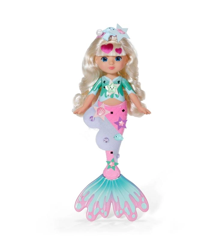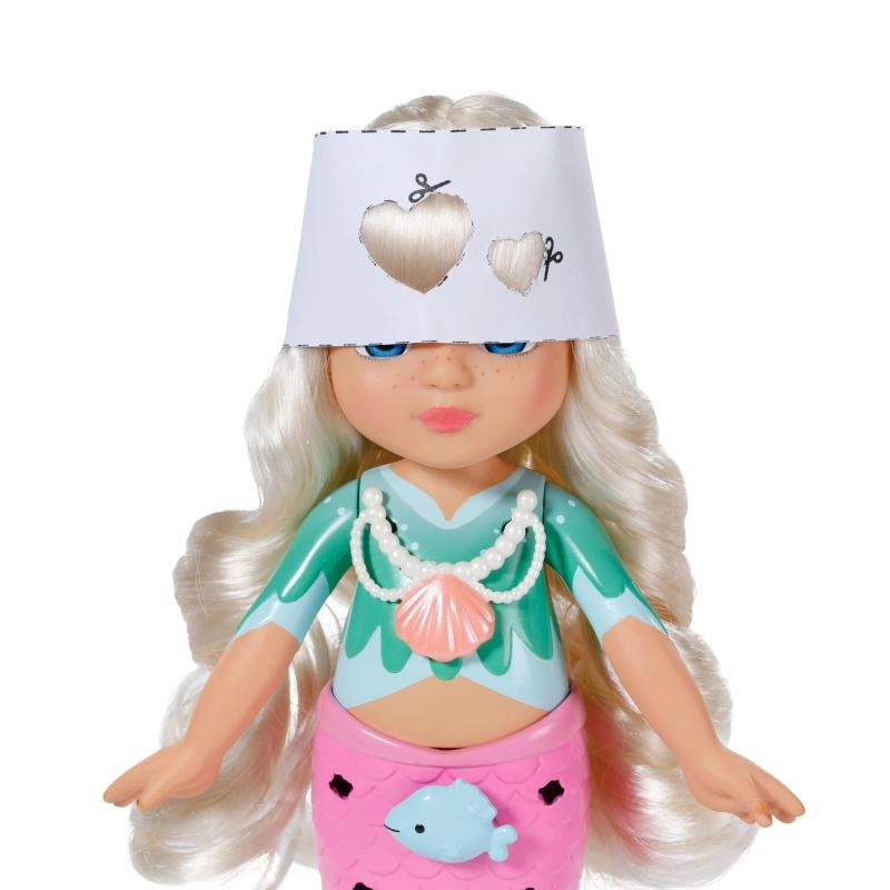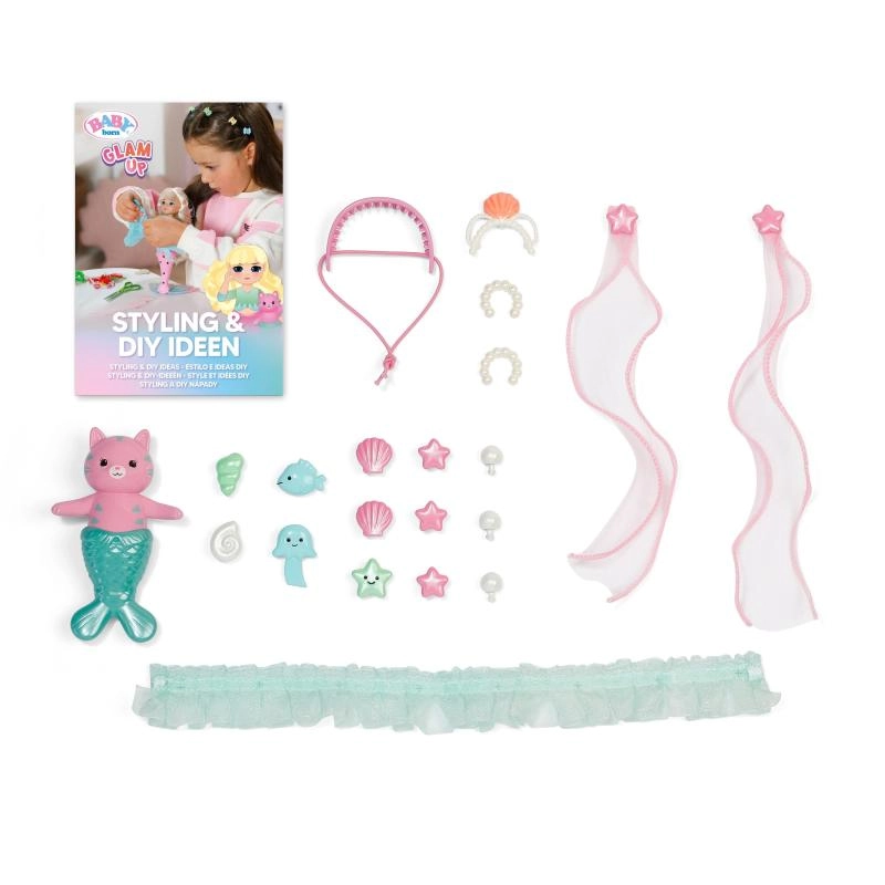 Découvrez le monde de la création avec la poupée BABY born Glam Up sirène Sparkle, qui adore changer de look et de couleur. Grâce à ses longs cheveux blonds changeant de couleur au soleil, à ses décorations à clipser, à ses accessoires textiles et à son adorable petit compagnon animal, les enfants créent facilement des styles originaux de la tête jusqu’à la nageoire. Parfaite pour le coiffage créatif, la décoration et le jeu imaginaire.