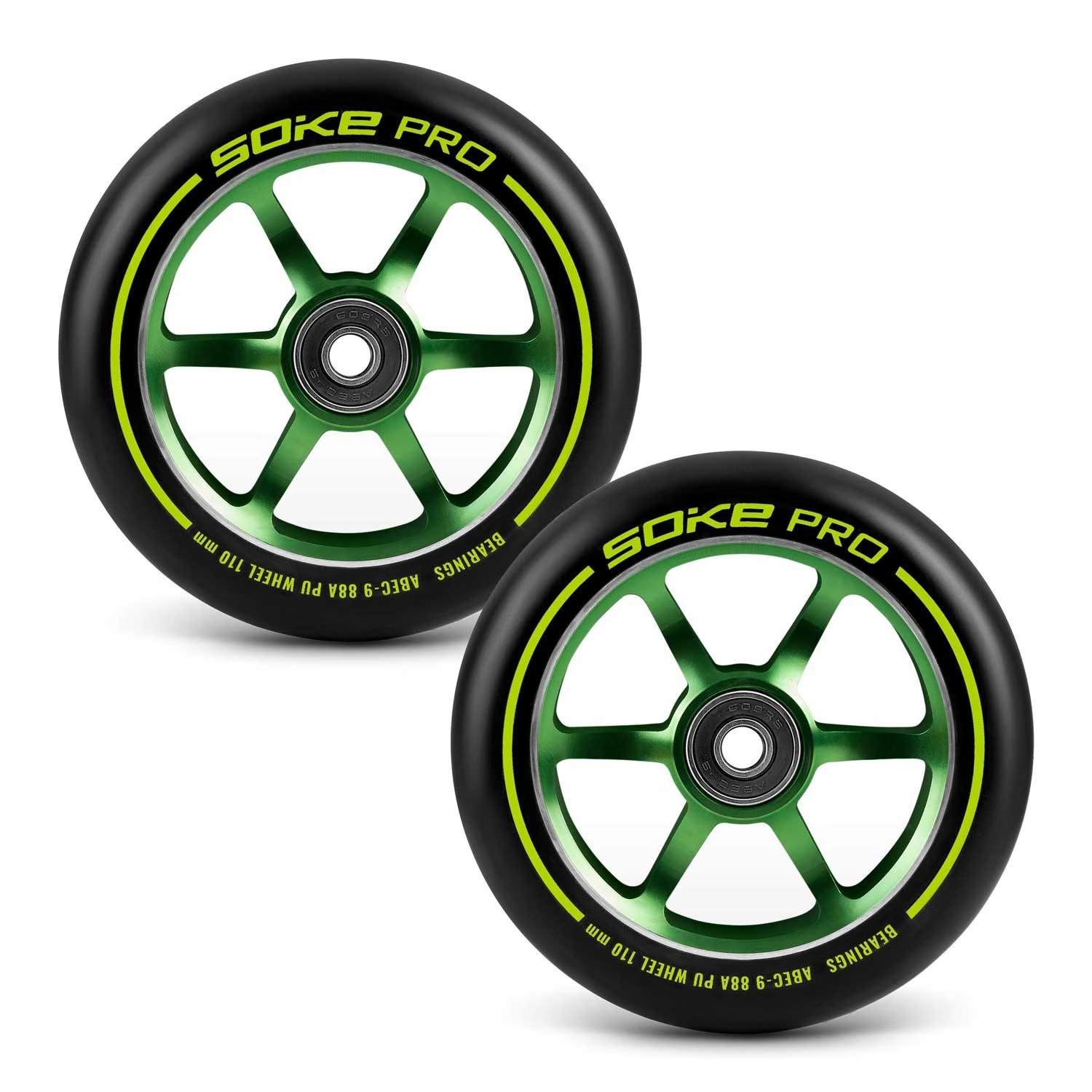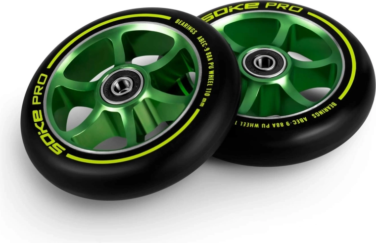 Les roues de trottinette SOKE de 110 mm de diamètre sont conçues pour une glisse vive et le freestyle. Le PU (88A) résistant garantit un équilibre idéal entre adhérence et vitesse, tandis que le noyau en aluminium apporte de la solidité lors des réceptions et des tricks. Des roulements ABEC-9 précis assurent des démarrages fluides et une résistance minimale.