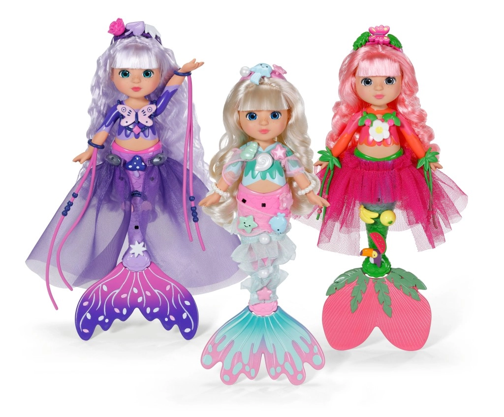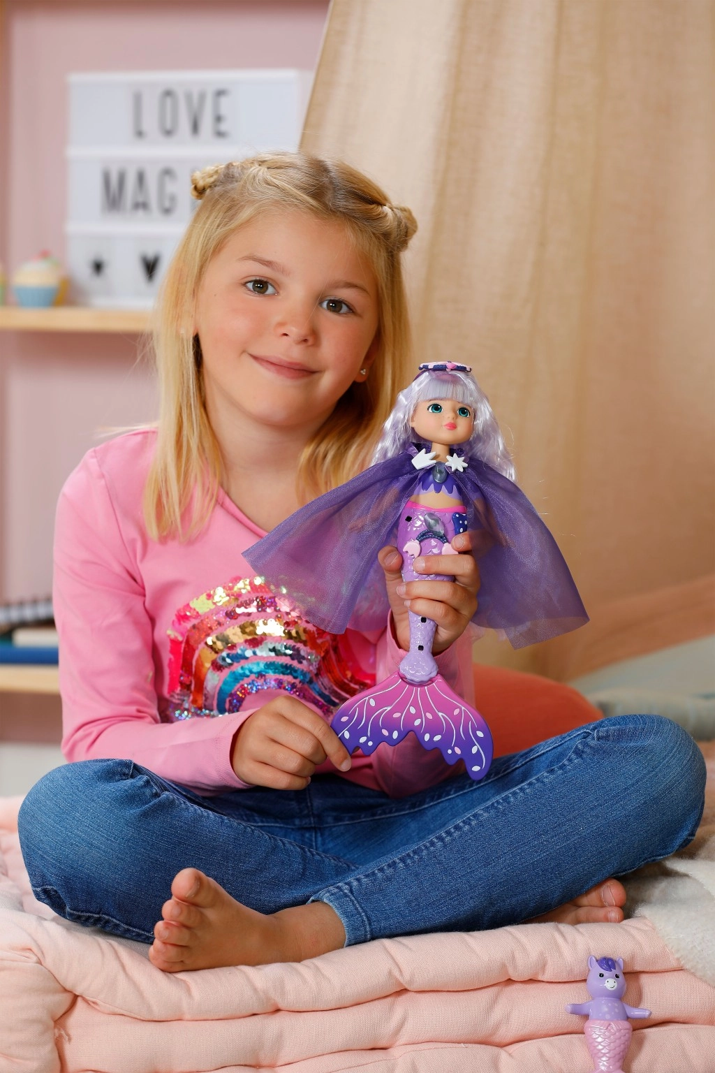 - Poupée sirène Aura, accessoires textiles, ornements colorés à clipser, compagnon animal avec nageoire amovible, brochure d’inspiration