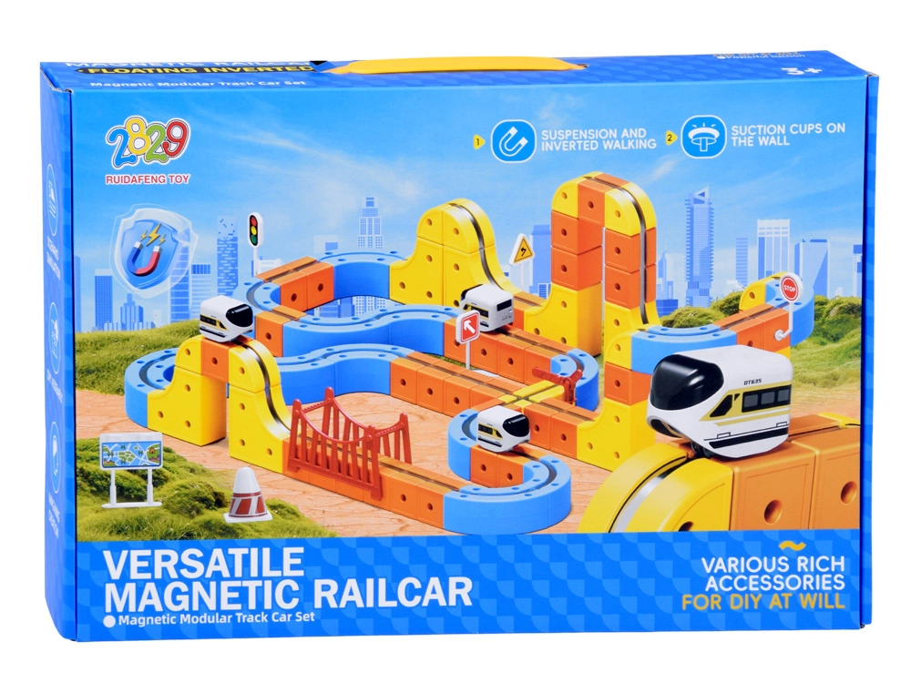 Découvrez un circuit de course magnétique ludique, où le véhicule circule même à l’envers pour un incroyable effet de « suspension ». Les pièces se connectent rapidement et solidement grâce aux aimants, l’assemblage est simple et robuste. Recharge USB pour une utilisation pratique, ventouses pour fixer la piste au mur, et un riche ensemble d’accessoires offrant des heures de jeu créatif et le développement de la motricité fine et de la coordination.