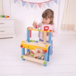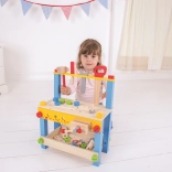 Ce coloré établi de travail en bois BIGJIGS TOYS est une excellente introduction au monde des outils. Grâce à des éléments réalistes et des outils en bois sûrs, les enfants exercent des compétences pratiques et apprennent les principes de base de l’utilisation des outils – de manière ludique et sécurisée.