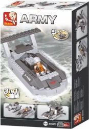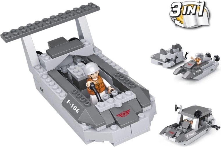 Le kit SLUBAN pour petits guerriers offre la possibilité de construire un bateau de débarquement de trois manières différentes. Avec ce jeu de construction, les enfants peuvent s'amuser pendant des heures tout en développant leur créativité.