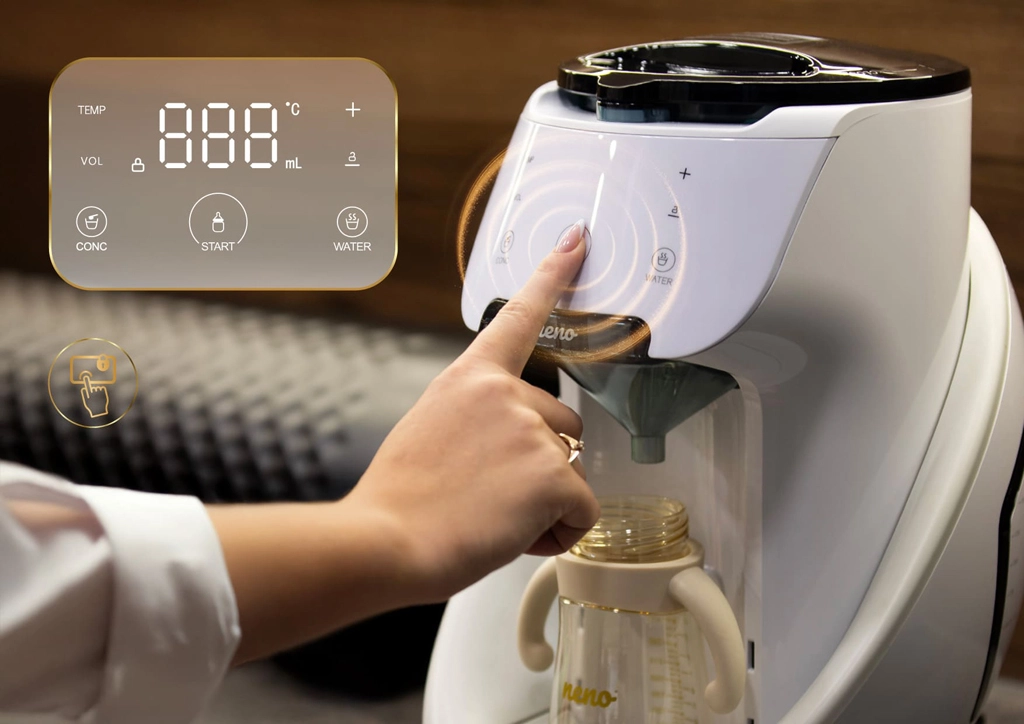 Facilitez chaque tétée avec l’appareil Neno Primavera – un assistant intelligent qui prépare un lait infantile parfait en quelques secondes. Grâce au chauffage rapide de l’eau à 35–70 °C, au mélange automatique sans grumeaux ni bulles et au contrôle tactile intuitif, vous obtenez toujours la température et le volume idéaux. La compatibilité avec la plupart des biberons, les réglages personnels mémorisés et les capteurs de sécurité font de cet appareil un partenaire fiable pour les parents modernes – y compris pour les tétées nocturnes grâce à son éclairage LED.