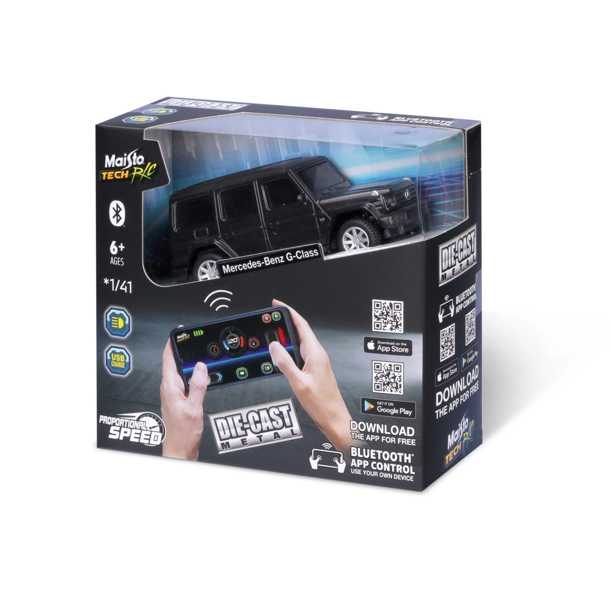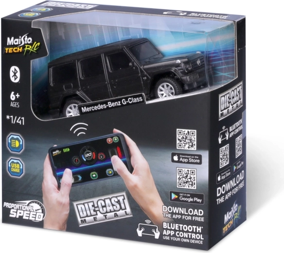 Découvrez une nouvelle façon de vous amuser avec le Mercedes‑Benz G‑Class 1:41 de Maisto – une voiture RC avec Bluetooth 5.0, phares et 2,4 GHz pour une conduite fluide. La batterie Li‑ion rechargeable via USB‑C avec câble inclus dans la boîte assure une recharge rapide et une préparation immédiate pour la course. Contrôlez le véhicule facilement avec votre smartphone et profitez des détails réalistes de l’iconique G‑Class.
