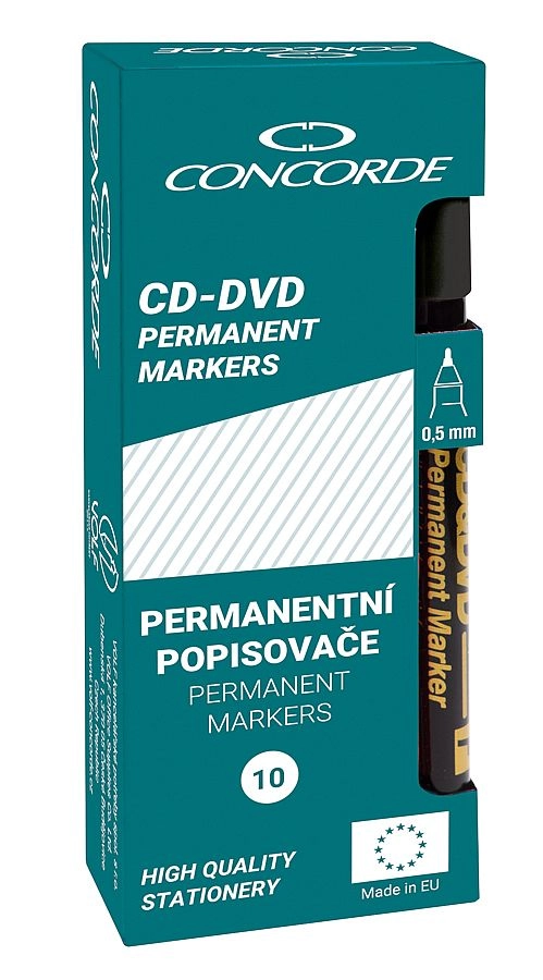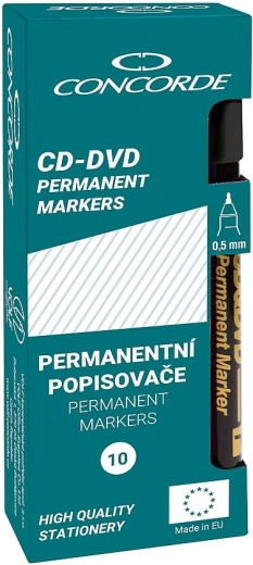 Marqueur permanent universel CONCORDE pour un étiquetage précis et durable, pas seulement des disques CD et DVD. Il offre une encre à base d’alcool séchage rapide, résistante à l’eau et à l’abrasion, tout en pouvant être facilement retirée avec de l’alcool. La fine largeur de tracé 0,5 mm (F) garantit un marquage net et lisible.