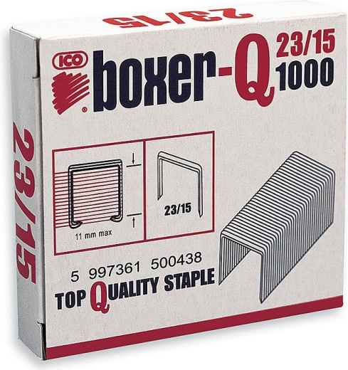 Agrafes résistantes 23/15 galvanisées pour une liaison fiable de documents épais. Convient pour l’agrafage jusqu’à une épaisseur de 11 mm et fourni en conditionnement économique de 1000 pcs pour un usage durable au bureau comme à l’atelier.