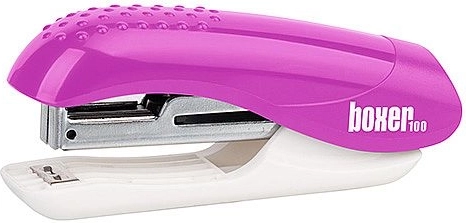 L’agrafeuse BOXER 100 dans une élégante couleur violette est un choix idéal pour le bureau, l’école et la maison. Grâce au solide guidage métallique du magasin, elle assure une alimentation fluide et précise des agrafes, tandis que la base en plastique protège la surface du bureau contre les rayures.