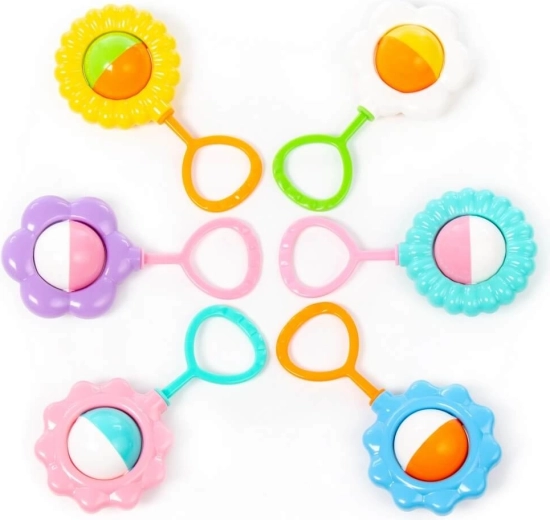 De joyeux hochets pour enfants en forme de fleur stimulent la vue, l’ouïe et la motricité fine. Grâce à leur conception légère et sûre avec une boucle de préhension ergonomique, ils se tiennent facilement même par les plus petites mains. Les formes et couleurs variées invitent à l’exploration et sont idéales pour jouer au quotidien, à la maison comme en déplacement. Disponibles en 6 modèles différents. Prix pour 1 pièce.