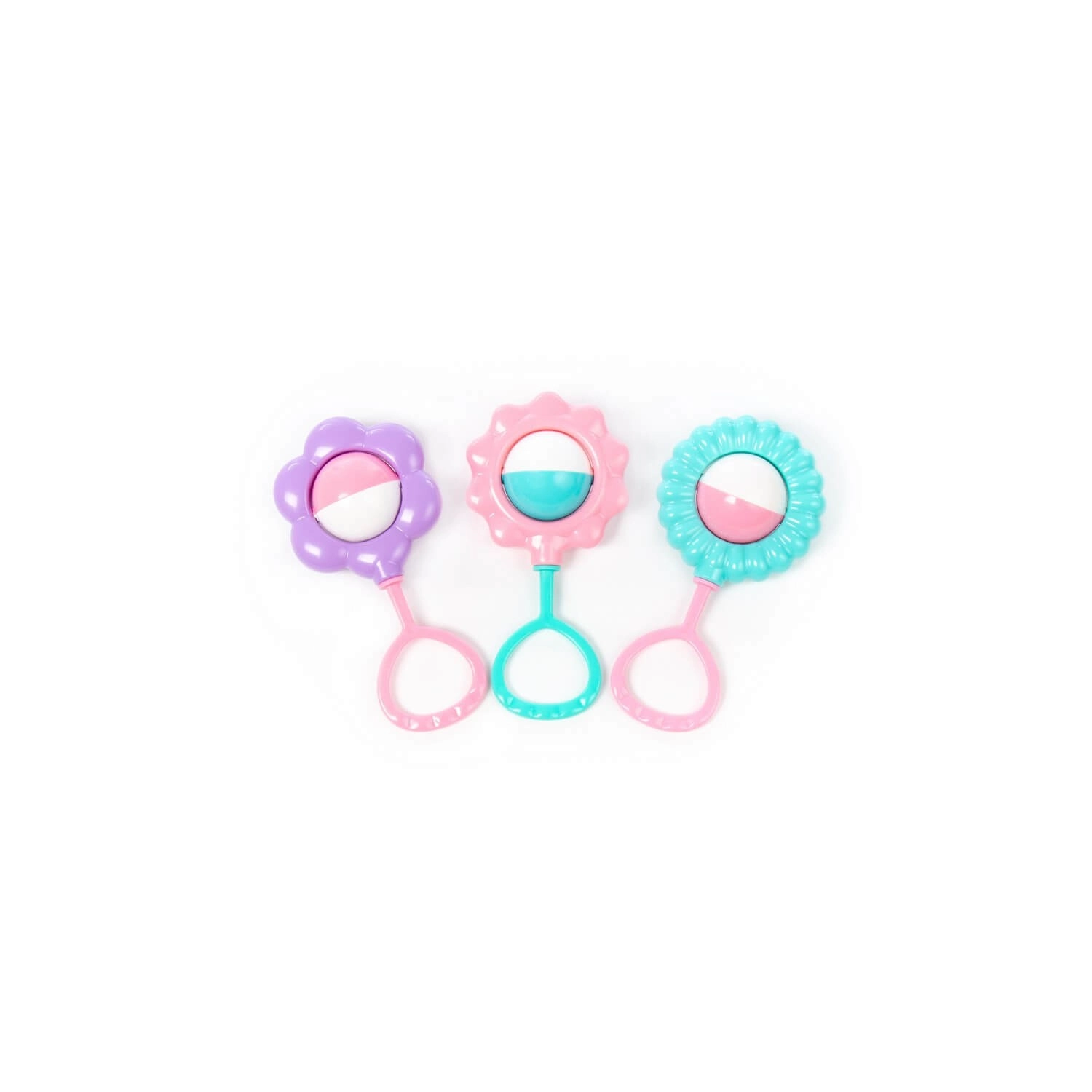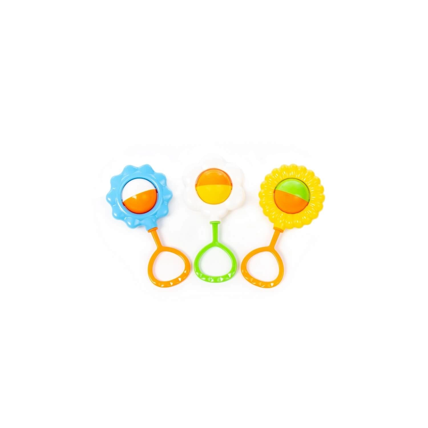 Découvrez avec votre bébé un monde de sons et de couleurs grâce à des hochets conçus pour les premières stimulations sensorielles. Chaque hochet possède un disque central bicolore rotatif qui émet un son agréable en mouvement et incite l’enfant à saisir et à secouer. Des bords lisses et arrondis ainsi qu’une structure plastique légère assurent une utilisation sûre et confortable.
