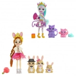Plongez dans le royaume enchanté des Enchantimals, où chaque marionnette a son compagnon animal et des amitiés durables. Ce coffret offre deux options : Cambrie Cow avec la vache Ricotta et deux veaux, ou Dinah Duck avec la cane Slosh et trois canetons. Chaque marionnette possède des vêtements et chaussures amovibles, permettant un styling créatif pendant le jeu.