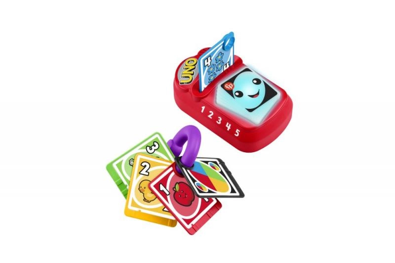 Un jouet ludique et interactif inspiré du jeu UNO apprend aux tout-petits à compter, les couleurs et leurs premiers mots grâce aux lumières, à la musique et à des phrases parlées. Insérez l’une des cinq cartes rigides dans la base pour activer plus de 30 sons, chansons et réactions. Grâce au mode multilingue (dont le tchèque) et à l’anneau pratique pour les cartes, le jouet est idéal à la maison comme en voyage.