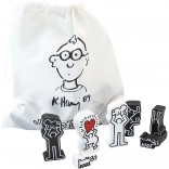 Un sac textile à motif KEITH HARING est inclus pour transporter et stocker les pièces en toute sécurité et simplicité.