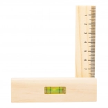Comprend une équerre avec niveau à bulle, une clé, un tournevis, un marteau, une pince et une perceuse avec 3 embouts.