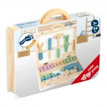 La mallette en bois avec outils pour enfants Nordic offre d’innombrables possibilités de développer dextérité et créativité. Les enfants peuvent assembler diverses constructions grâce aux nombreuses pièces colorées et aux vis et écrous robustes. La mallette est solide et résistante, équipée de bandes élastiques pour maintenir les outils en toute sécurité.