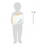 Sa fermeture métallique fiable et sa poignée adaptée aux mains des enfants assurent un transport facile. L’ensemble est fabriqué en combinaison de contreplaqué et de bois massif, offrant une grande durabilité et de nombreux petits plus pratiques. Les enfants peuvent choisir parmi différents motifs : atelier Miniwob et style scandinave Nordic.