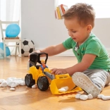 Cette chargeuse de construction pour enfants de 44 cm de long est fabriquée en plastique élastique de haute qualité, conforme aux normes européennes. Elle est conçue pour permettre aux enfants de vivre des scénarios réalistes en jouant et de développer leurs compétences motrices. La chargeuse comprend une figurine de conducteur et offre de nombreuses possibilités de mouvement grâce à sa cabine élévatrice et sa pelle rotative.