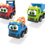 Un joyeux petit camion de chantier pour les plus petits, à roue libre, ravira les enfants par ses couleurs et son interactivité. Il offre des effets lumineux et sonores, trois variantes de carrosserie (benne, bétonnière, camion de transport) et une longueur compacte de 13 cm pour une prise en main facile. Sa conception en plastique résistant et la roue libre favorisent un jeu sûr et créatif.