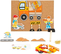 Découvrez un jeu de clouage ludique avec planche en liège, pièces en bois et petit marteau, qui développe l’imagination et les compétences des enfants. Les enfants composent leur propre chantier ou une scène de transport à partir des pièces et la fixent avec des punaises. Des modèles illustrés pour l’inspiration sont inclus, le tout rangé dans une boîte pratique. Favorise la créativité, la motricité fine et la concentration.