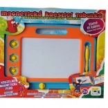 La tablette de dessin magnétique est le choix idéal pour les petits artistes à la maison comme en voyage. Grâce au stylo magnétique magique et aux trois tampons, les enfants profitent d’heures de création sans papier ni crayons. D’un simple mouvement de la réglette d’effacement, le dessin disparaît et la surface est prête pour une nouvelle œuvre.