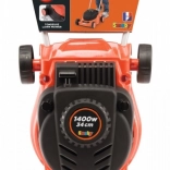 La tondeuse émet un effet sonore rappelant une vraie tondeuse lorsqu'elle est en mouvement. De plus, elle possède un bouton rotatif pour simuler la régulation de la vitesse.
