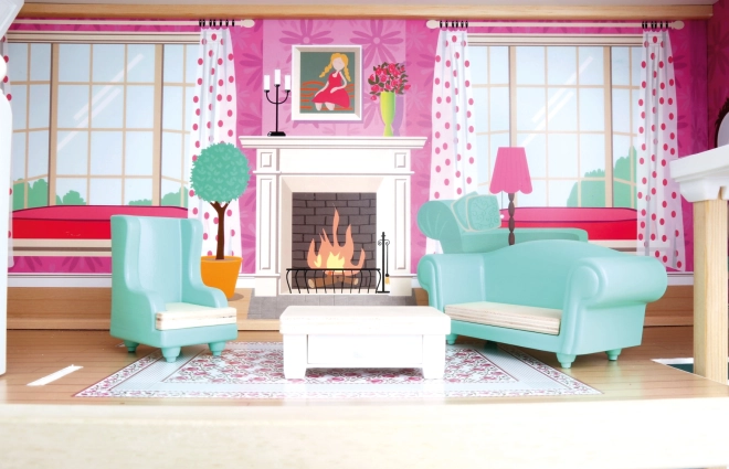 Cette élégante maison de poupées à trois étages offre des pièces entièrement équipées – cuisine, salon, salle de bain et chambre. L’ascenseur, l’escalier intérieur et le balcon apportent une dimension réaliste au jeu. La fabrication en bois de qualité est durable et sûre, idéale pour les jeux quotidiens entre frères et sœurs ou amis.
