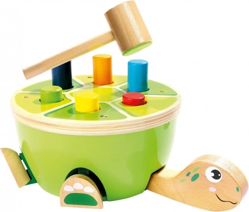Ce jeu de martelage tortue de Bino est un choix idéal pour les premières activités motrices. Les enfants martèlent en toute sécurité les chevilles colorées dans la carapace à l’aide d’un marteau en bois avec revêtement en feutre doux. Le jeu développe naturellement la motricité fine, la coordination œil–main et la concentration, et grâce à son design joyeux, le jouet retient l’attention pendant longtemps.