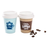 Deux gobelets finement réalisés « Fresh Coffee » et « Tea » avec couvercles blancs apportent une touche authentique aux jeux de café comme aux coins thé.