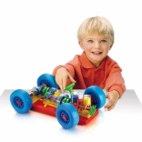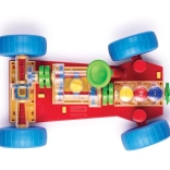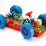 Un jouet ingénieux qui incite directement les enfants et leurs parents à découvrir comment fonctionne une vraie voiture. Toutes les fonctions mécaniques de base y sont fidèlement reproduites. Au niveau du moteur, les enfants voient comment travaillent les cylindres et le vilebrequin et comment ils sont reliés à la boîte de vitesses, qui propose un changement de vitesses fonctionnel à 3 positions (point mort, 1ère et 2ème). Le différentiel transmet le mouvement aux roues arrière et permet leur rotation indépendante. Toutes les pièces mécaniques peuvent être facilement fixées au châssis et libérées de la même manière grâce à des boutons jaunes à ressort spécialement conçus. Le volant est fonctionnel et permet à la voiture de tourner ou d’entrer dans un parking. Les enfants peuvent également soulever la voiture à l’avant et à l’arrière à l’aide de chariots spéciaux et, en tournant la manivelle de celui de l’avant, mettre tout le mécanisme en mouvement. En changeant les différents rapports, ils verront la vitesse des roues et des cylindres varier. En passant au point mort, ils remarqueront aussi que le moteur et le différentiel se désaccouplent. Destiné aux enfants à partir de 3 ans. Principales caractéristiques: les fonctions mécaniques de base sont reproduites, volant et pièces mécaniques fonctionnels, pour les enfants dès 3 ans