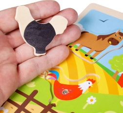 Les pièces en bois émettent des sons d’animaux caractéristiques une fois insérées, permettant aux enfants d’associer le son à l’animal correspondant.