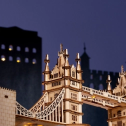 Découvrez l’atmosphère de Londres avec un modèle réaliste du Tower Bridge en contreplaqué de qualité. Les pièces s’emboîtent parfaitement, rendant l’assemblage fluide et plaisant. L’éclairage LED intégré confère au modèle terminé une touche chaleureuse en soirée et met en valeur des détails architecturaux soignés.