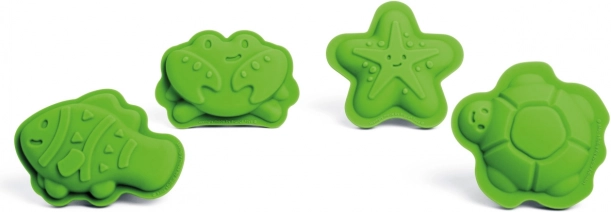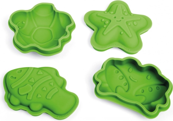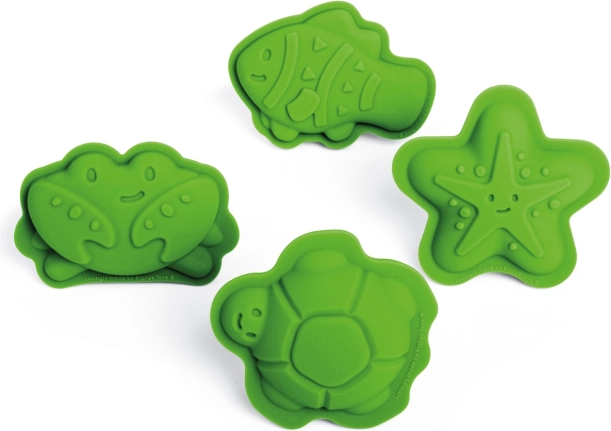 Découvrez un ensemble ludique de quatre moules 100 % silicone en coloris vert Meadow de BIGJIGS TOYS. Les enfants créeront de superbes sculptures de sable sur le thème marin – étoile de mer, crabe, poisson et tortue. Les moules sont résistants à la chaleur et aux taches, agréablement souples et sûrs pour les petites mains. Après le jeu, rangez-les simplement dans le pochon en coton inclus.