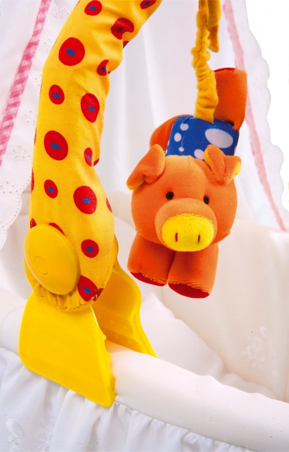 Le mobile peut être facilement fixé à la poussette ou au berceau, assurant confort et praticité.