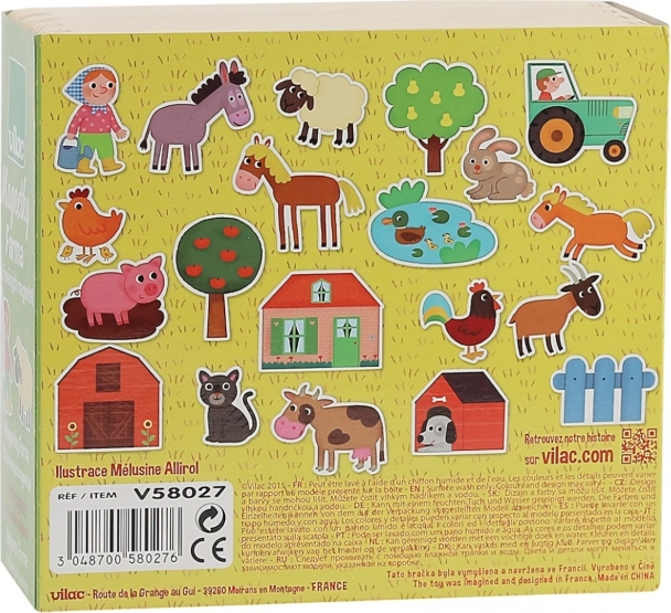 Les jouets VILAC portent le label de l’agence française ADEME – ils sont fabriqués de manière écologique et respectueuse de la nature. Ils ne polluent ni le sol, ni l’eau, ni l’air et économisent l’énergie. Les magnets adhèrent facilement au réfrigérateur ou au tableau magnétique, et leurs dimensions sont adaptées aux petites mains des enfants.
